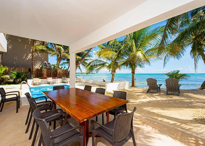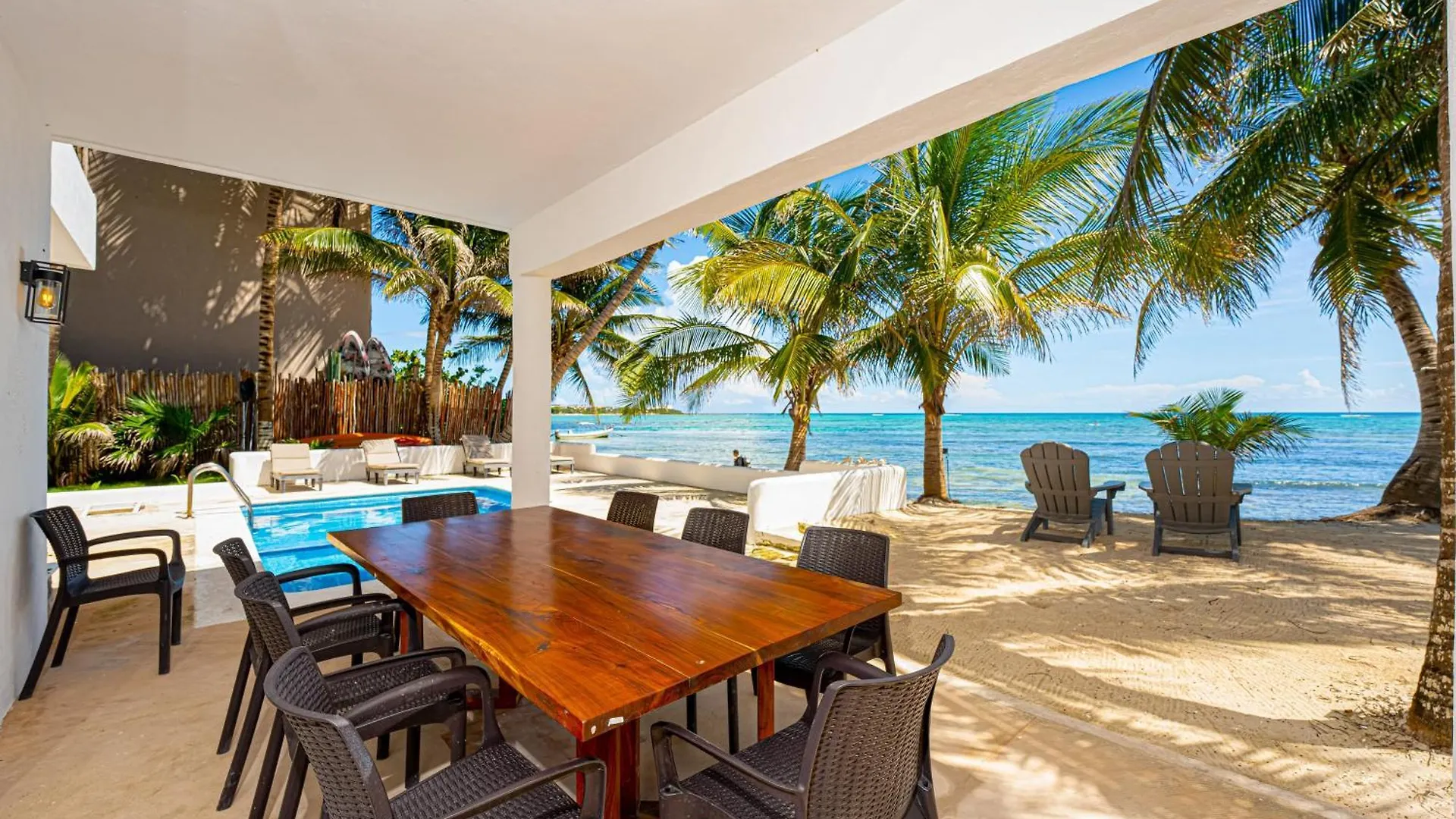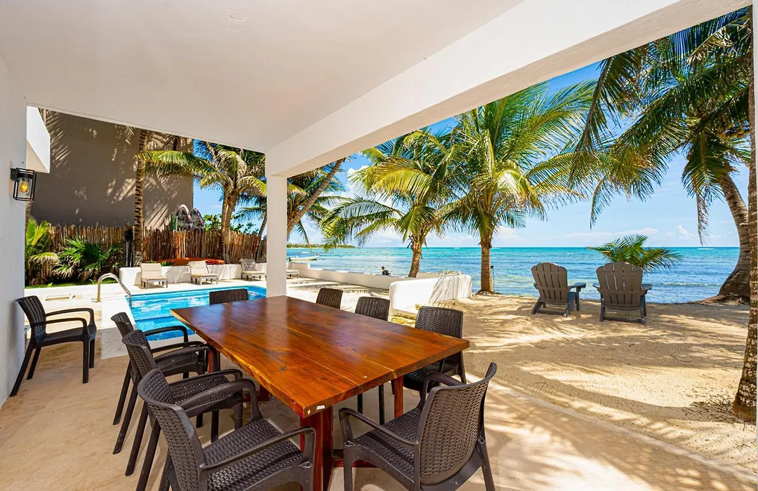 The beachfront villa is located in the Tankah Bay district, approximately 10 minutes by car from Cenote Nicte-ha.
